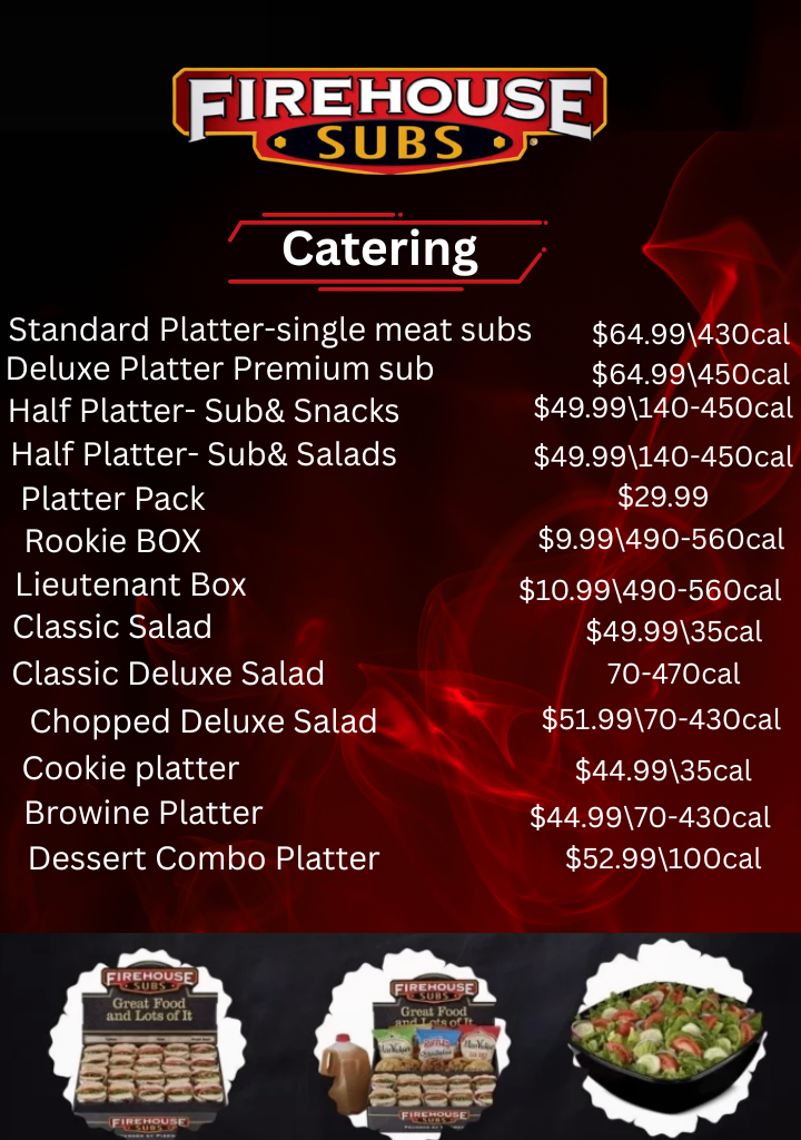Welcome to the Firehouse Subs Menu, where flavor meets fire. Our menu is full of bold, hearty sandwiches crafted with the freshest ingredients and the spirit of service. From our Hook & Ladder to the spicy Firehouse Hero, all of our subs feature premium meats and cheeses piled high, then toasted to perfection. Need something lighter? Check out our under 500-calorie menu, or modify your order to fit your tastes. At Firehouse Subs, with every single bite, all greatness is a sign to great taste while committing toward contributing back toward community. Start finding out in detail about what makes menu explode today.